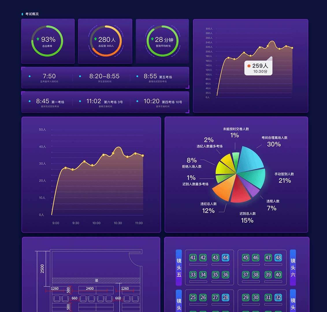 端到端的智能考場解決方案,基于先進的深度學(xué)習(xí)算法與計算機視覺感知技術(shù)、結(jié)合考試業(yè)務(wù)中的典型場景,建設(shè)智能考試AI大腦+視覺傳感器的全名感知體系,幫助傳統(tǒng)考試實現(xiàn)智能升級,提升考場權(quán)威性、安全性和效率。